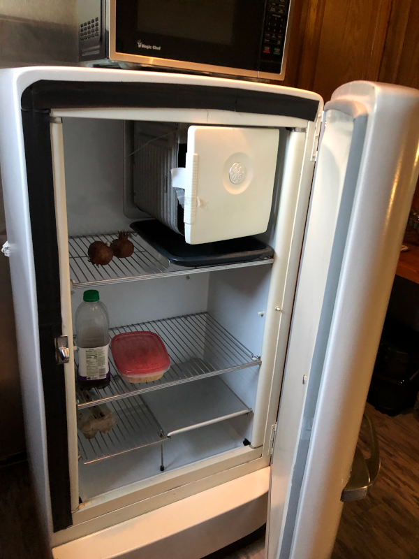 I almost forgot to write about this, but I did some work to restore my vintage General Electric fridge from 1953. I bought it from a guy for $100 off Craigslist in working condition, but it had a terrible habit of accumulating too much ice around the thermistor and condensation which was leaking out onto the floor and building up inside the door.