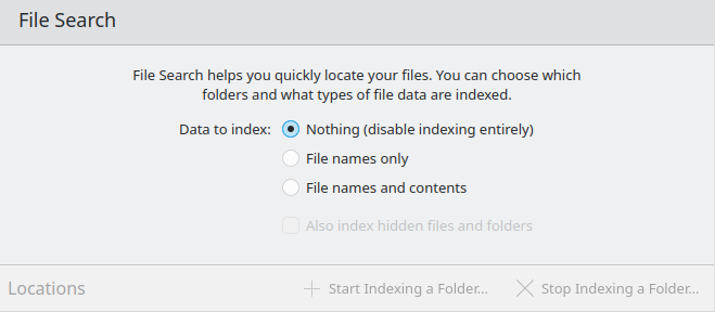I had to disable the Baloo file indexer entirely because it was very inefficient, utilizing 100% CPU which was going to burn thru my battery. It seemed to be getting caught up indexing the contents of various text files in the ~/.var directory. Initially I thought it would take a while to complete its process since I copied over my Downloads, Documents, and Pictures, but it wasn't even touching those directories yet and I could see in Filelight it had already amassed a 19GB database of whatever the heck it was indexing. I deleted it and disabled Baloo because I don't need it anyhow; I typically know where my files are at, and if I need to search for something on my system in particular, then I'll use find, grep, or locate.
