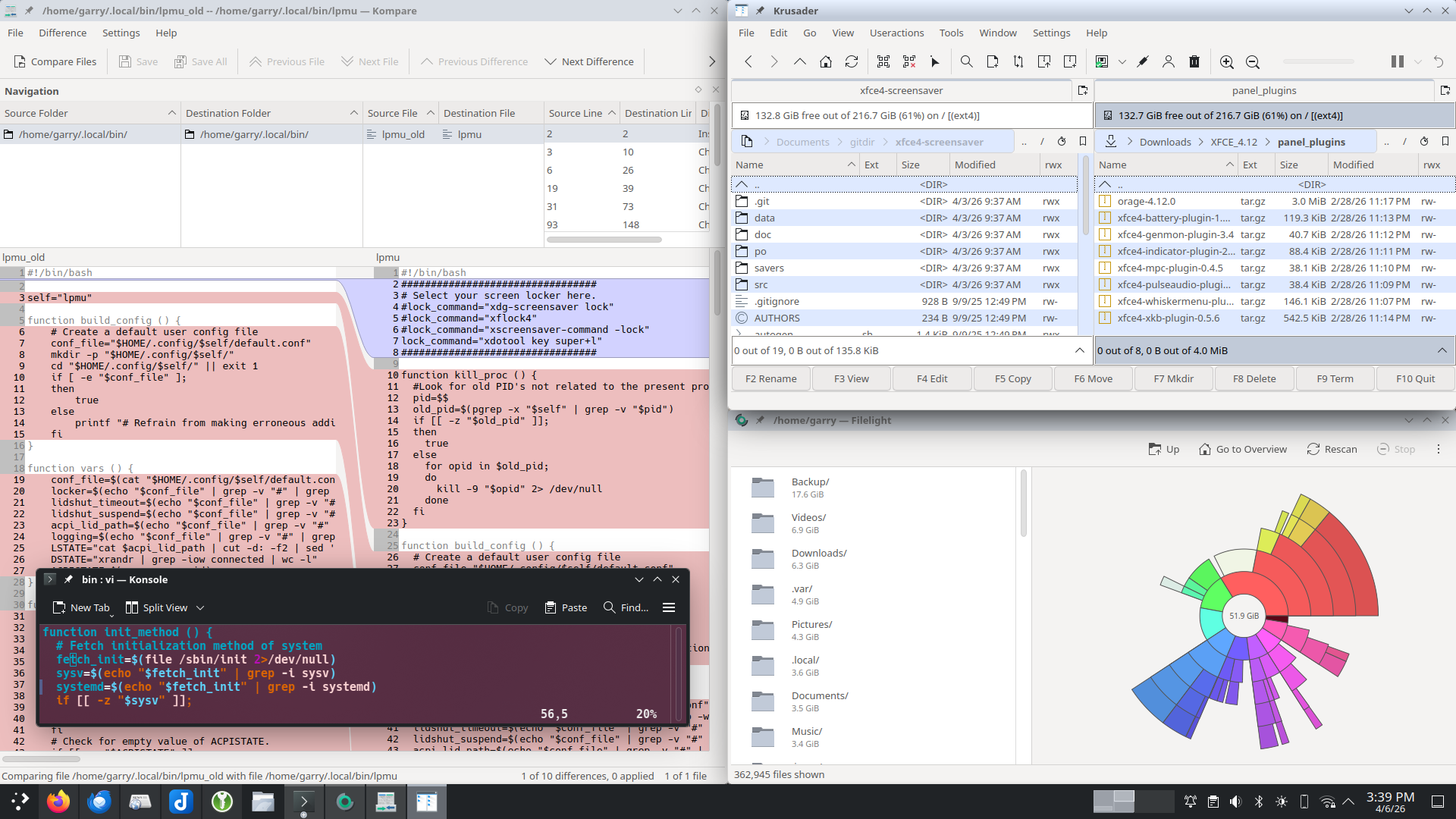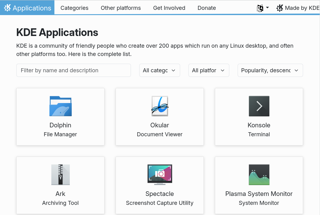To this day I still prefer Liferea for RSS and Thunderbird for email and refuse to use Akregator or KMail in their place, but I've been willing to try out other things. For example, instead of GNOME Disks, the KDE Partition Manager. Okular for PDF files instead of Atril or Evince. Ark for file archives instead of Xarchiver. Filelight instead of disk usage analyzer. Kompare for diff checking files instead of Meld. KTorrent instead of Transmission for torrent files. Smb4K instead of Gigolo for mounting file shares.