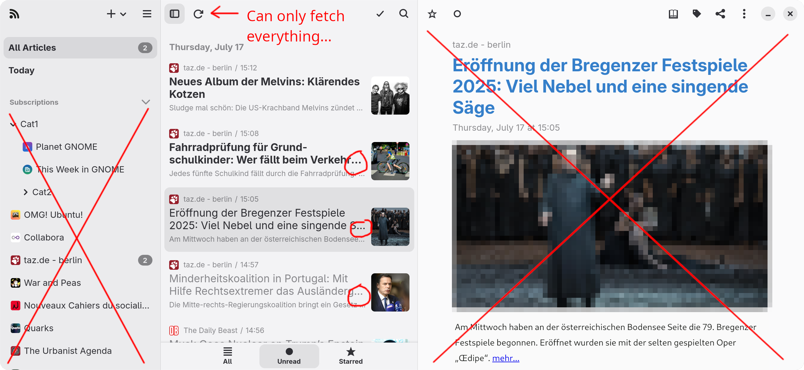 FYI, The first image is a stock screenshot from the GNOME Circle project. The second screenshot is from my Liferea.